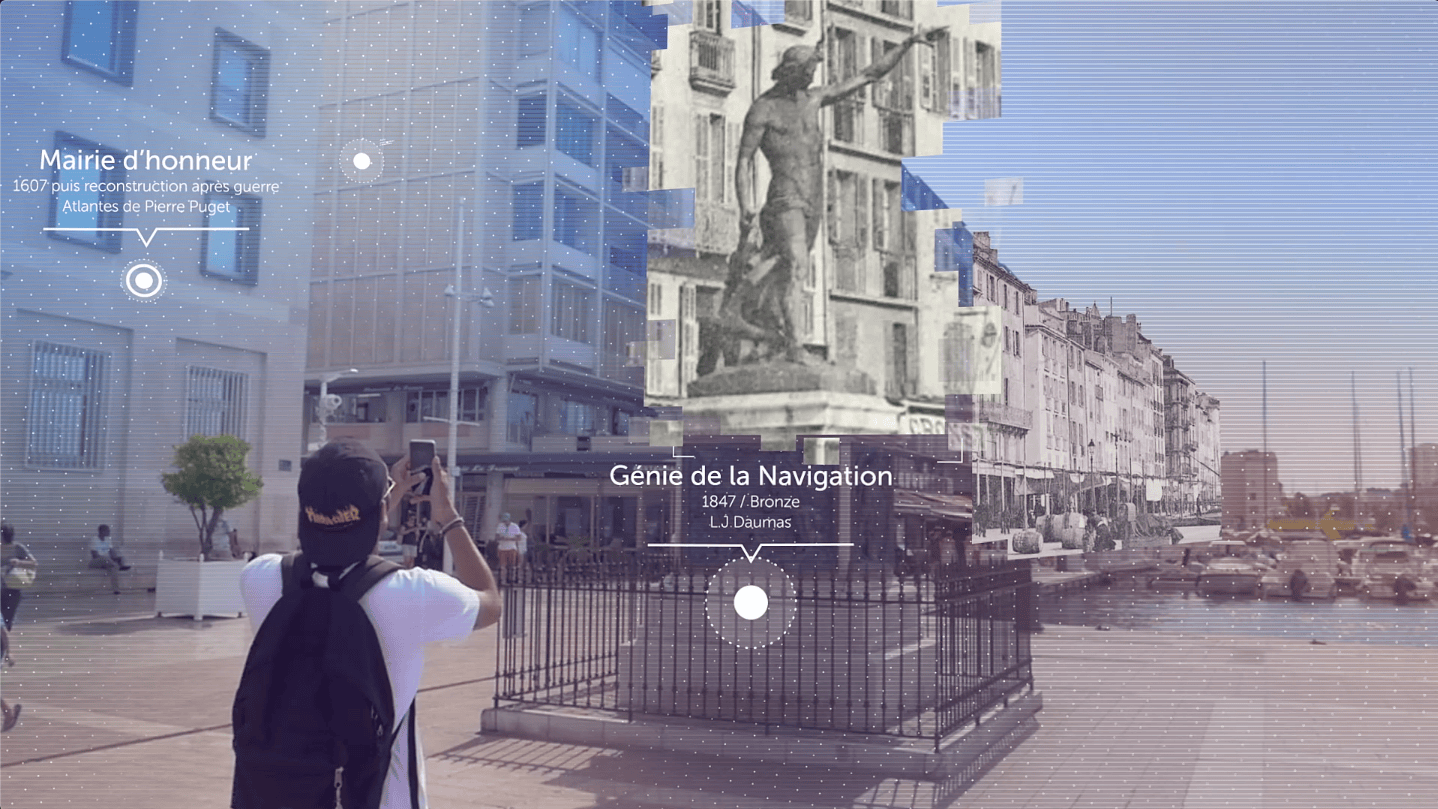 Création d’un nouveau service baptisé Augmented City sous la forme d’une application en réalité hybride dont la promesse est “Découvrir la ville autrement avec son mobile”.